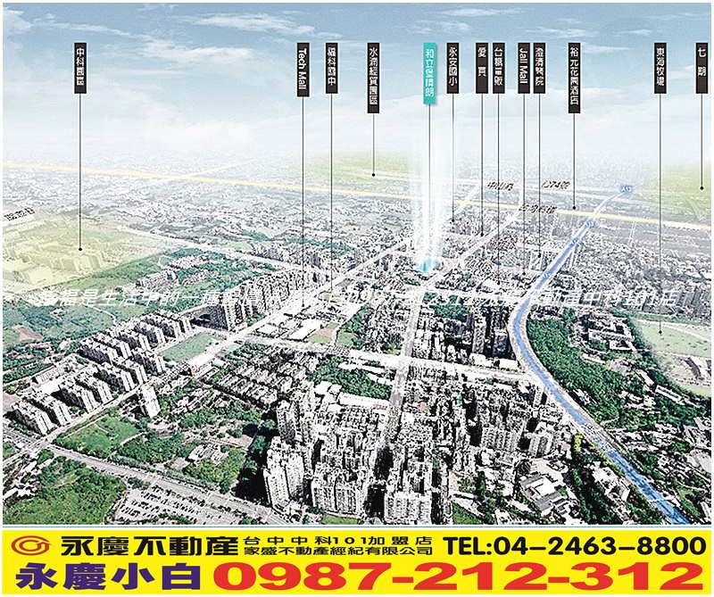 『和立堡晴朗』*中科生活圈核心特區,擁東海、靜宜、逢甲、弘光4座大學,緊鄰TECH Mall、J-Mall、遠東愛買、台糖、東海5大商圈,交通優勢佳,鄰近60米 中港路、中港交流道、二高、高鐵車站,地理優勢吸引科技公司主管、教授、醫生、科學園區就業人口購屋。