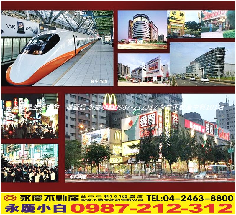 小白在台中西屯永慶不動產中科101店服務,公司團隊於中科、嶺東、逢甲、5期、7期、8期、10期、12期甲聯賣超強優值銷售團隊,千位菁英戰將同仁同步銷售,是台中最強、最快銷售團隊,若是您有買賣屋..等不動產任何需求歡迎您找小白。懇請您能給我們機會為您服務。