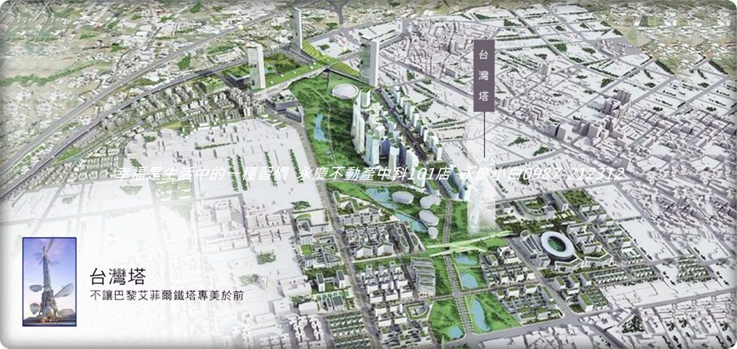 還擁有水湳經貿園區的偉大藍圖,不論是清翠園開發、台灣塔的日本藤本壯介、台中城市文化館建築師妹島和世等,將形成普立茲地標聚落。