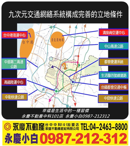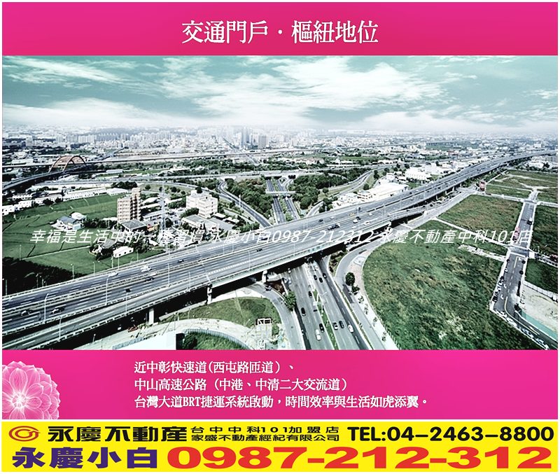 在交通動線部分又鄰中彰、台灣大道、中港、中清二大交流道樞紐之地,且近逢甲商圈,生活機能豐富。