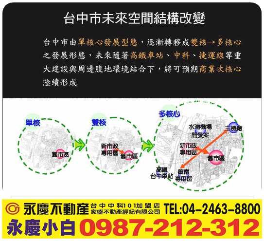 【中科、逢甲、七期、精密機械園區和水湳經貿園區核心地帶】
