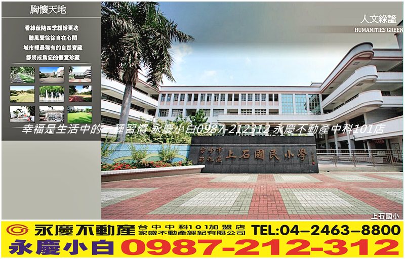 「惠宇禮仁」學區:上安國小、上石國小、西屯國小、至善國中、逢甲大學。