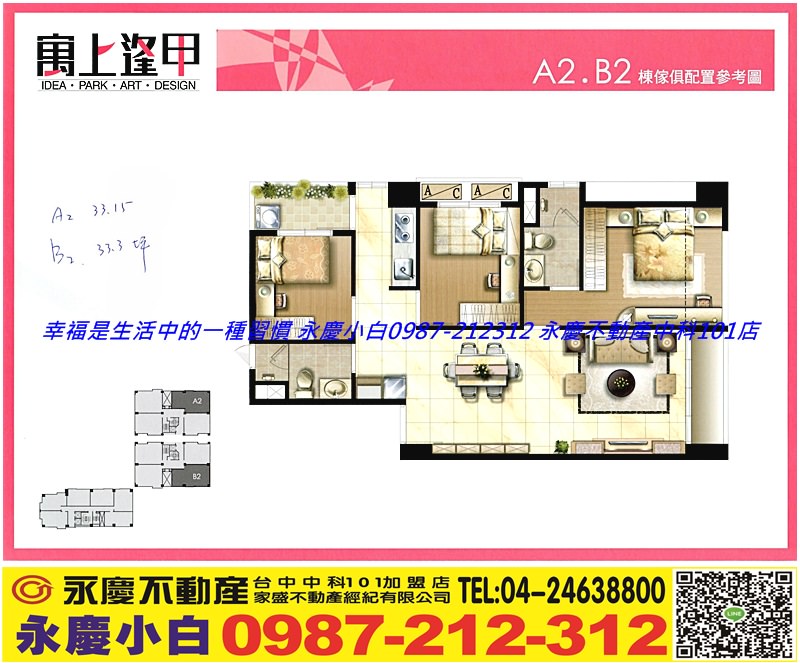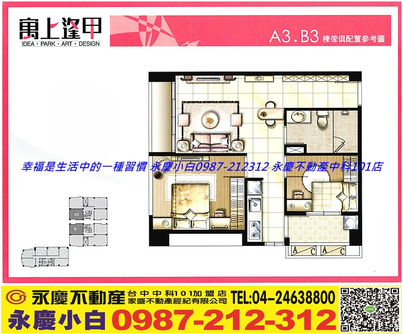 台中市西屯區預售大樓案「寓上逢甲」,面對上石國小、近上石公園、逢甲夜市,生活機能佳。全案規劃166戶、坪數18~33坪、1~3房,零店面設計,採前、後門雙社區大門出入。