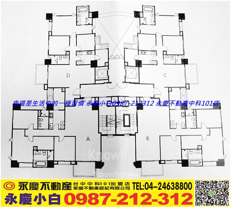 ◆棟別規劃:ABCD戶一層四戶共用兩部梯。