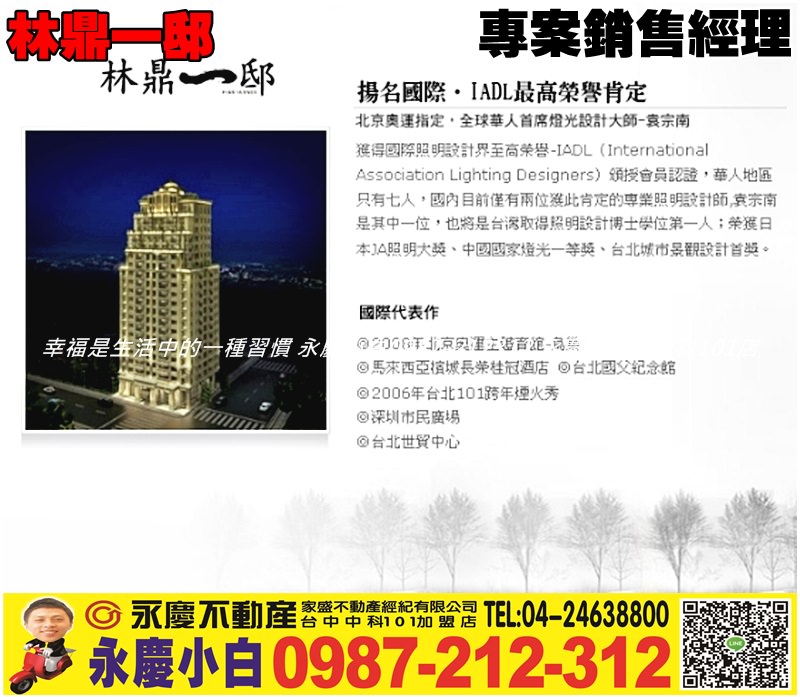 親身經歷了建築十幾年來的演變,發現最主要的改變,來自於人們對於生活功能的需求的提昇。於是我們在同時擁有中山高速公路、快速道路、高鐵等交通優勢,集全台灣省三千寵愛於一身的西屯中科特區再創「林鼎新願景」。