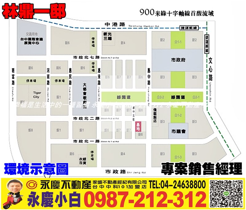 優質建商,超優地段,交通生活機能完善,正七期,鄰近市政中心,7期新市政中心區域內有台中市政大樓、台中市議會大樓、新光三越百貨台中店、Tiger City老虎城購物中心、大都會歌劇院、台中市國際會展中心、遠東百貨台中購物中心、台中捷運G9站。
