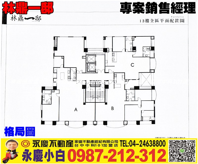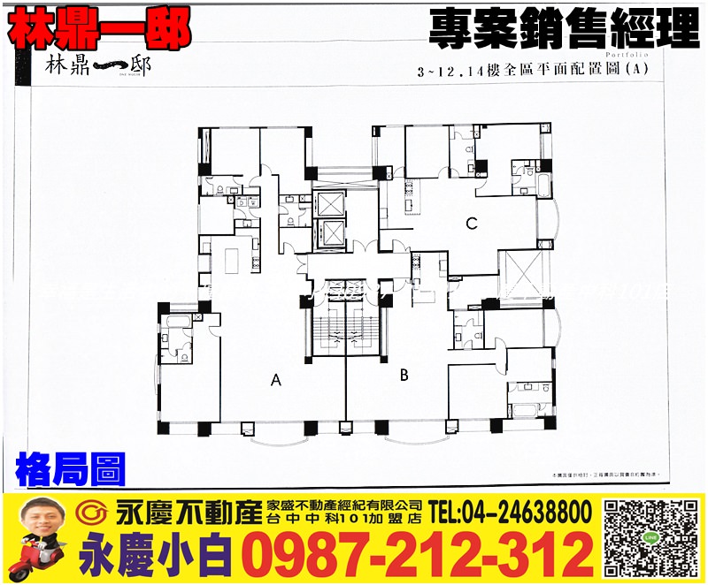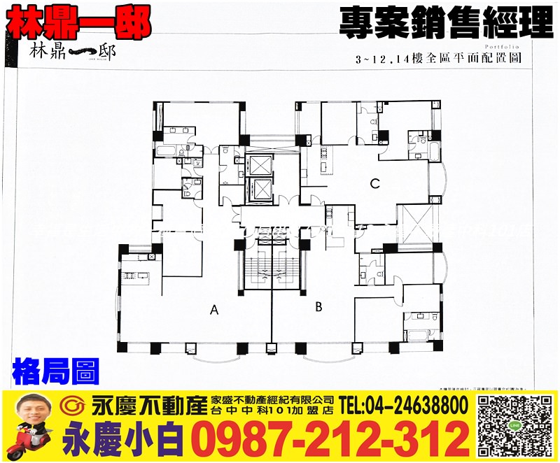 ◆棟別規劃:A棟、B棟、C棟(一層三戶共用兩部梯,十五樓以上為合併戶單層兩戶)。