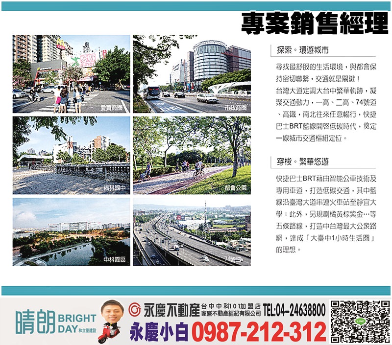 本團隊已在大台中中科深耕數十多年於中科、嶺東、逢甲、5期、7期、8期、12期、新10期聯賣超強優值銷售團隊,同仁約有400位菁英戰將同仁同步銷售,是台中最強、最快銷售團隊,若是您有買賣屋..等不動產任何需求歡迎您找小白,也懇請您能給我們機會為您服務。