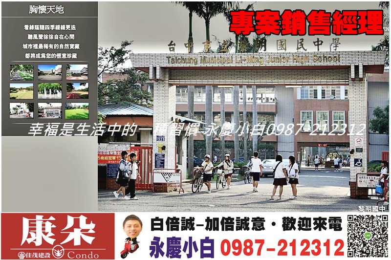 本團隊已在大台中深耕數十多年於逢甲、12期、7期、5期、8期、南屯嶺東、中科、新10期聯賣超強優值銷售團隊,同仁約有400位菁英戰將同仁同步銷售,是台中最強、最快銷售團隊,若是您有買賣屋..等不動產任何需求歡迎您找小白。也懇請您能給我們機會為您服務。
