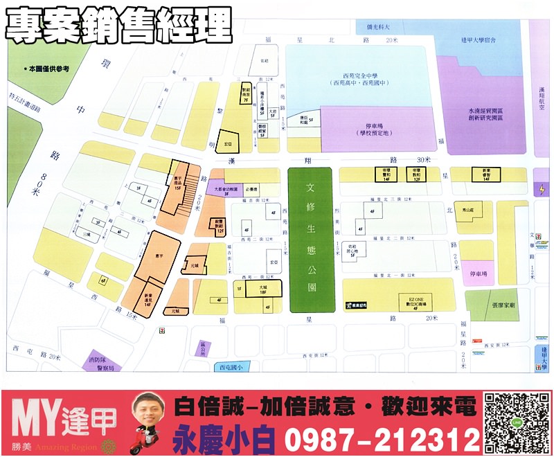 「勝美MY逢甲」學區:長安國小、上安國小、上石國小、西屯國小、葳格國中、至善國中、逢甲大學。