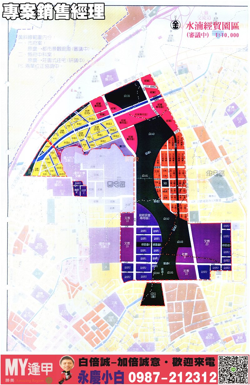 「MY逢甲」台中市逢甲12期新興重劃區,因挾7期、中科、水湳經貿園區構成黃金三角的核心位置,現在水湳經貿園區啟動,和7期形成政經雙核心,目前地價高昂、建商推案成本激增,紛朝大坪數豪宅規劃,並多採等級較高的建材設備,主要訴求換屋以及高品質的購屋族群。