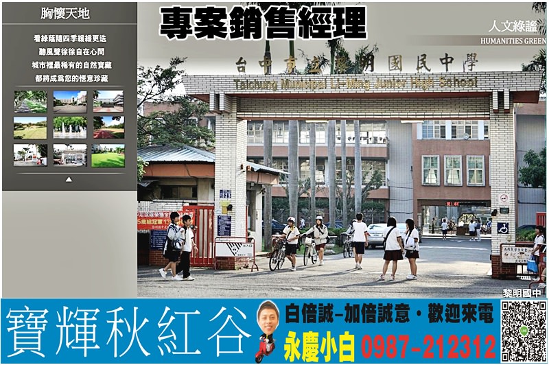 本團隊已在大台中深耕數十多年於七期、逢甲、12期、5期、8期、南屯嶺東、中科、新10期聯賣超強優值銷售團隊,同仁約有400位菁英戰將同仁同步銷售,是台中最強、最快銷售團隊,若是您有買賣屋..等不動產任何需求歡迎您找小白。也懇請您能給我們機會為您服務。