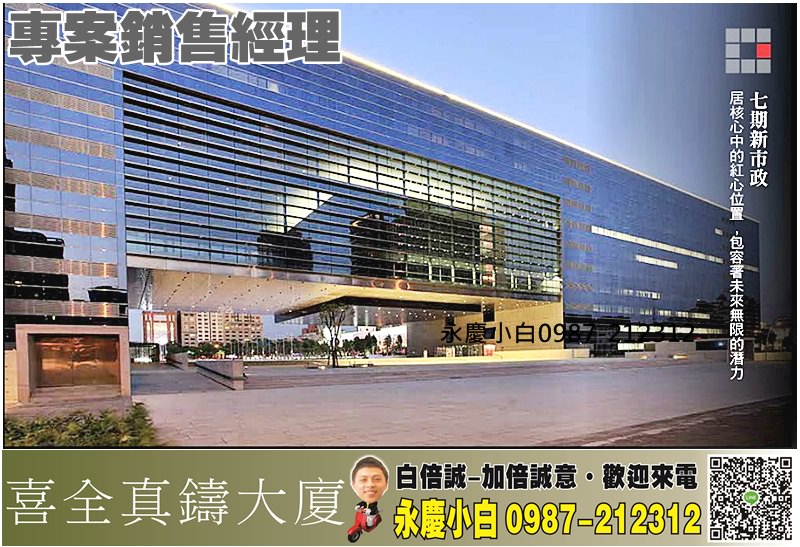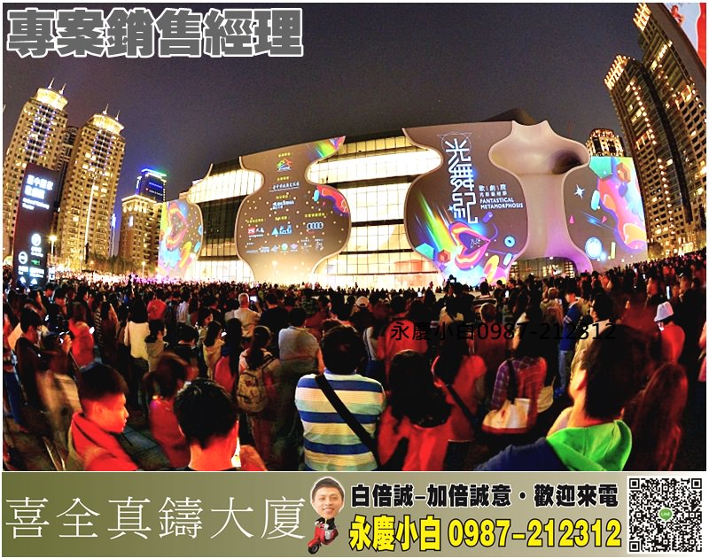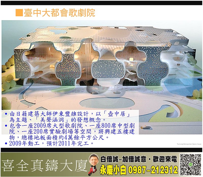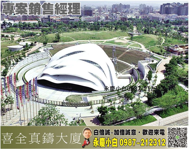 喜全建設「喜全真鑄大廈」位處7期新市政中心、歌劇院首排,臨市政北六路、惠民路角地,拔地興建地上26樓、地下6樓純住宅大樓,共耗時4年施工。本案位處稀有角地,住戶可同時擁秋紅谷和國家歌劇院等2大地標美景。」