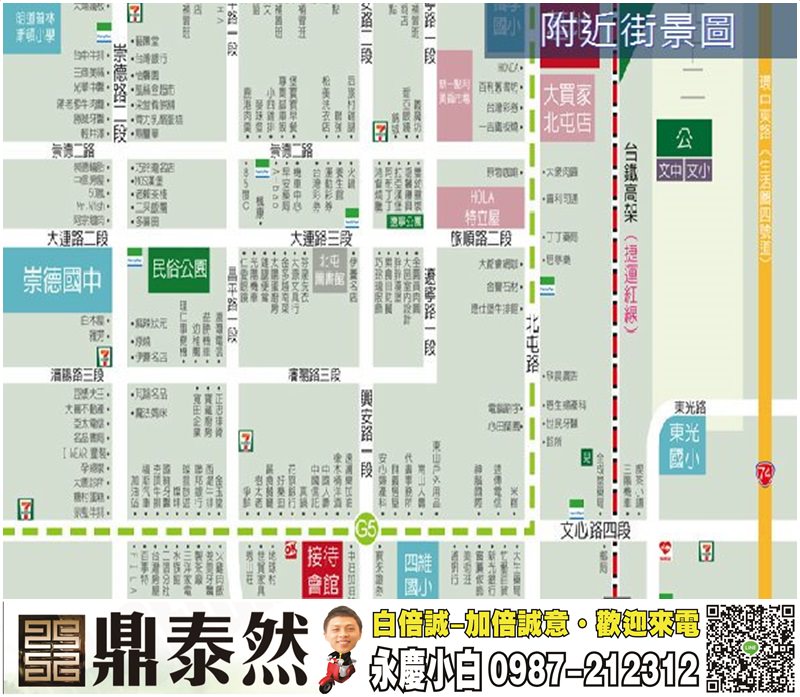 享受增值效益之餘,更要享受優質生活,鼎泰然擇北屯大道而居,透過早已發展成熟的各式機能,在3分鐘步行範圍內,即可滿足食衣住行育樂所需,先天地段優勢高人一等。開門正對僑孝國小,近鄰北新國中,雙學區落實9年菁英教育;近在隔壁的大買家、相鄰不遠的HOLA、全聯、一點利黃昏市場、7-11超商、丁丁藥局等,商家齊聚,採買便捷;假日,則可走入大坑風景區的自然懷抱裡,補充身心能量,【鼎泰然】出入皆美,進退自得!