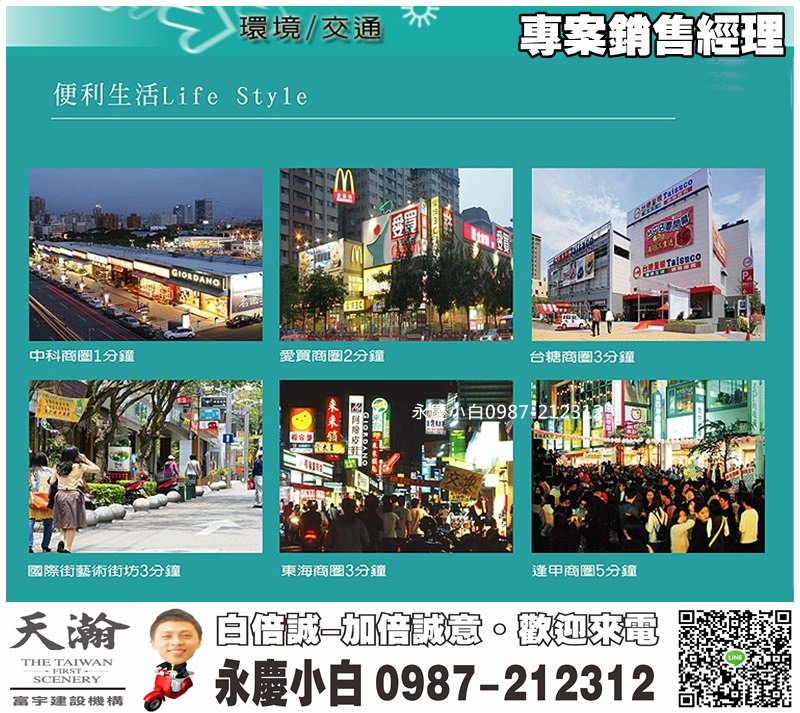 本團隊已在大台中中科深耕數十多年於中科、嶺東、逢甲、5期、7期、8期、12期、新10期聯賣超強優值銷售團隊,同仁約有400位菁英戰將同仁同步銷售,是台中最強、最快銷售團隊,若是您有買賣屋..等不動產任何需求歡迎您找小白。也懇請您能給我們機會為您服務。