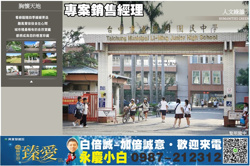 本團隊已在大台中深耕數十多年於逢甲、12期、7期、五期、南屯、嶺東、中科、新10期聯賣超強優值銷售團隊,同仁約有400位菁英戰將同仁同步銷售,是台中最強、最快銷售團隊,若是您有買賣屋..等不動產任何需求歡迎您找小白。也懇請您能給我們機會為您服務。