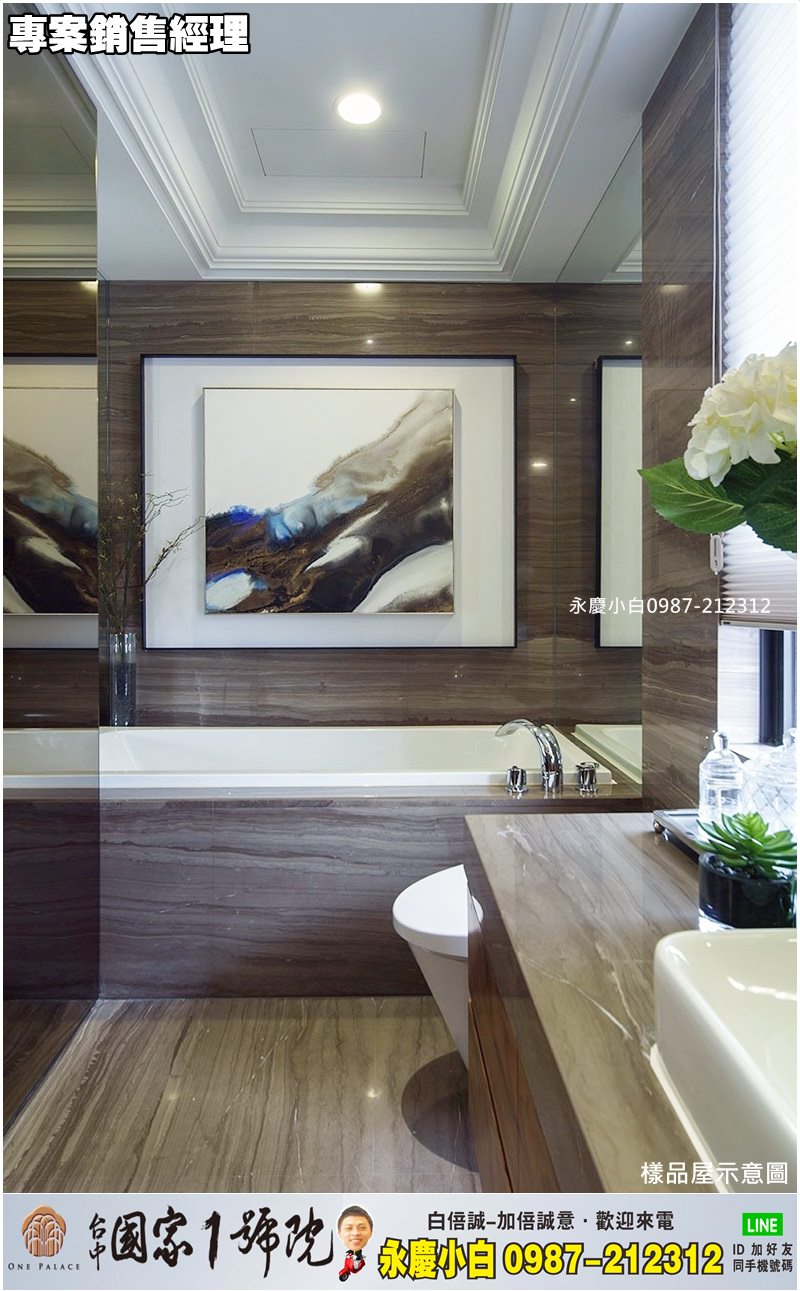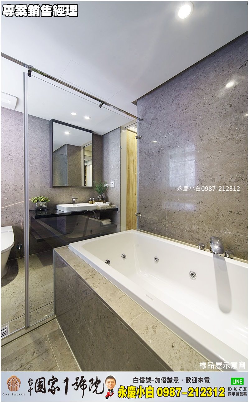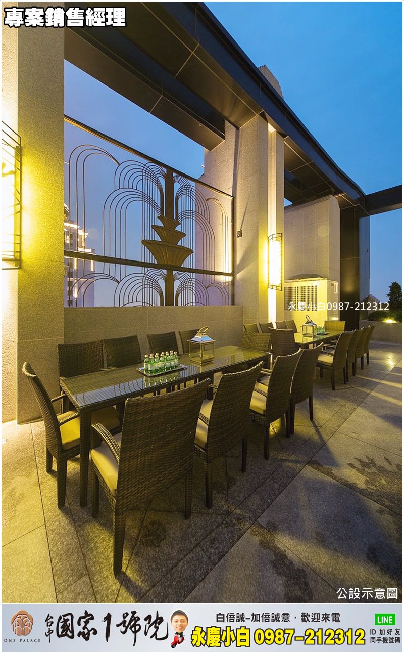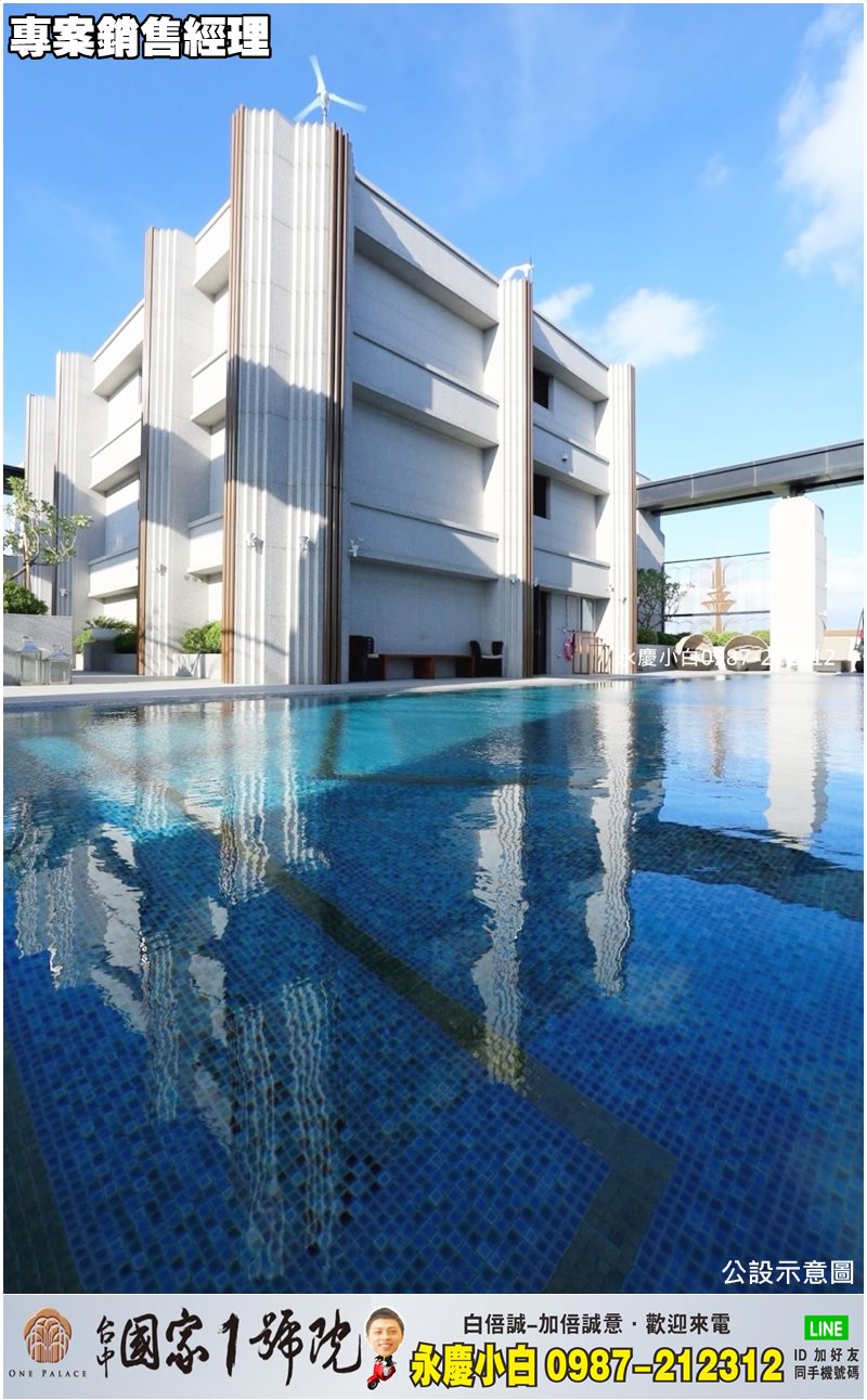 「台中國家1號院」規畫86至102坪,外觀選用純天然建材,結合戶外噴泉式的雕花欄杆,兼具通風與美觀;隱藏樑柱設計,兼顧結構安全,最叫人驚嘆的是頂樓「無邊際游泳池」、SPA區,邊游泳邊欣賞7期夜景,豪華氣派、隱密性夠,展現工程團隊建築實力。