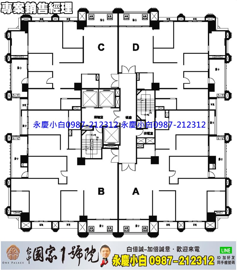◆格局規劃:均質四房,一層四戶ABCD戶共用三部梯。