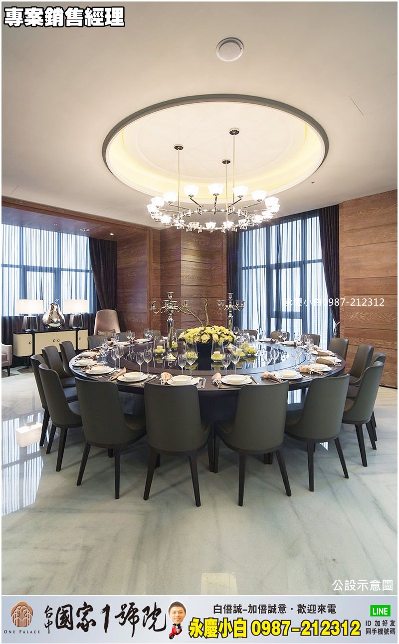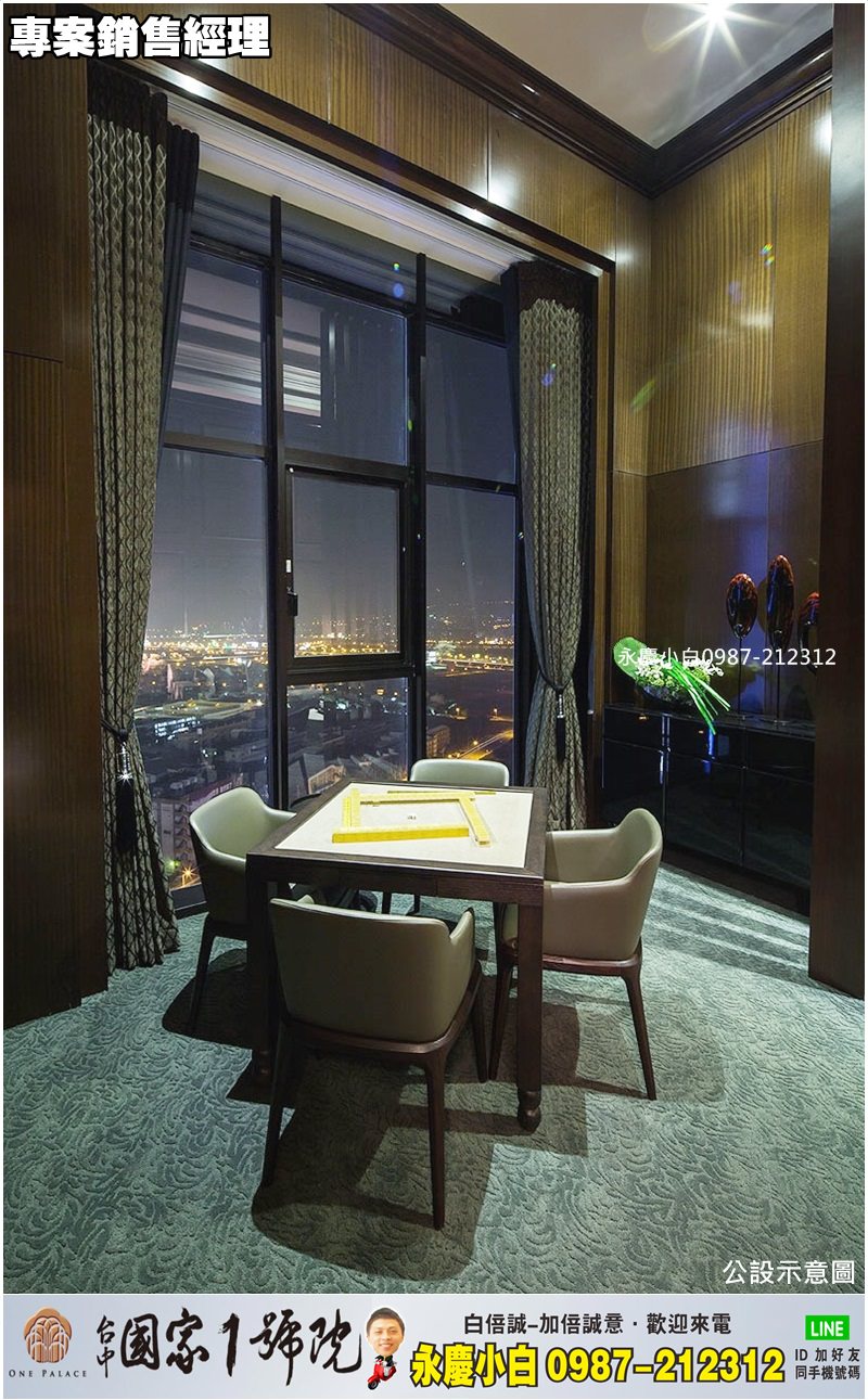 是豪宅也是頂級招待所,「台中國家1號院」保留29樓最美景觀,打造頂級私人招待會館,有鐵板燒貼身料理區、宴客廳、蒙地卡羅橋牌藝室、鋼琴Lounge bar、威爾斯輕運動區等,完全滿足住戶宴客所需。