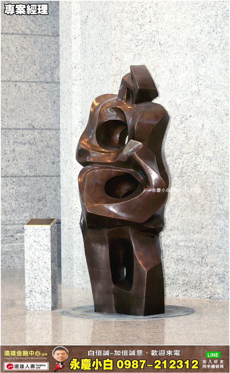 遠雄金融中心台中與台灣不斷藝術家-劉彥均攜手合作,以「生命的河流」傳達愛為生命之初始萌發之意念公共藝術展示與「生命之緞」「母與子」雕塑相呼應,讓遠雄金融中心有了人文與藝術的溫度。